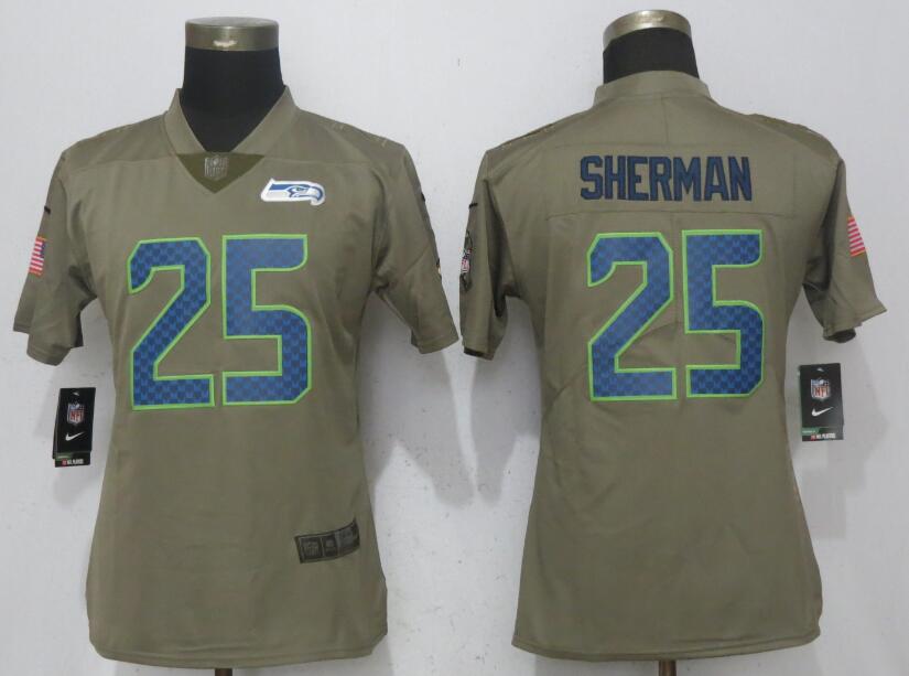 Women Seattle Seahawks 25 Richard Sherma Olive Salute To Service Elite Jersey