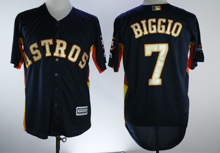 Houston Astros #7 Craig Biggio Cool Base Jersey Blue With Gold Number