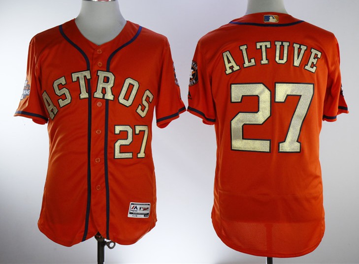 Houston Astros #27 Jose Altuve Flexbase Jersey Orange With Gold Number