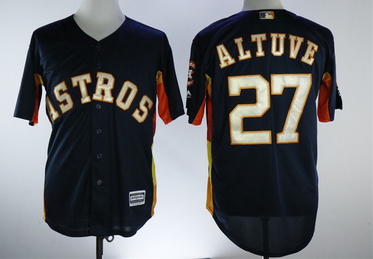 Houston Astros #27 Jose Altuve Cool Base Jersey Blue With Gold Number