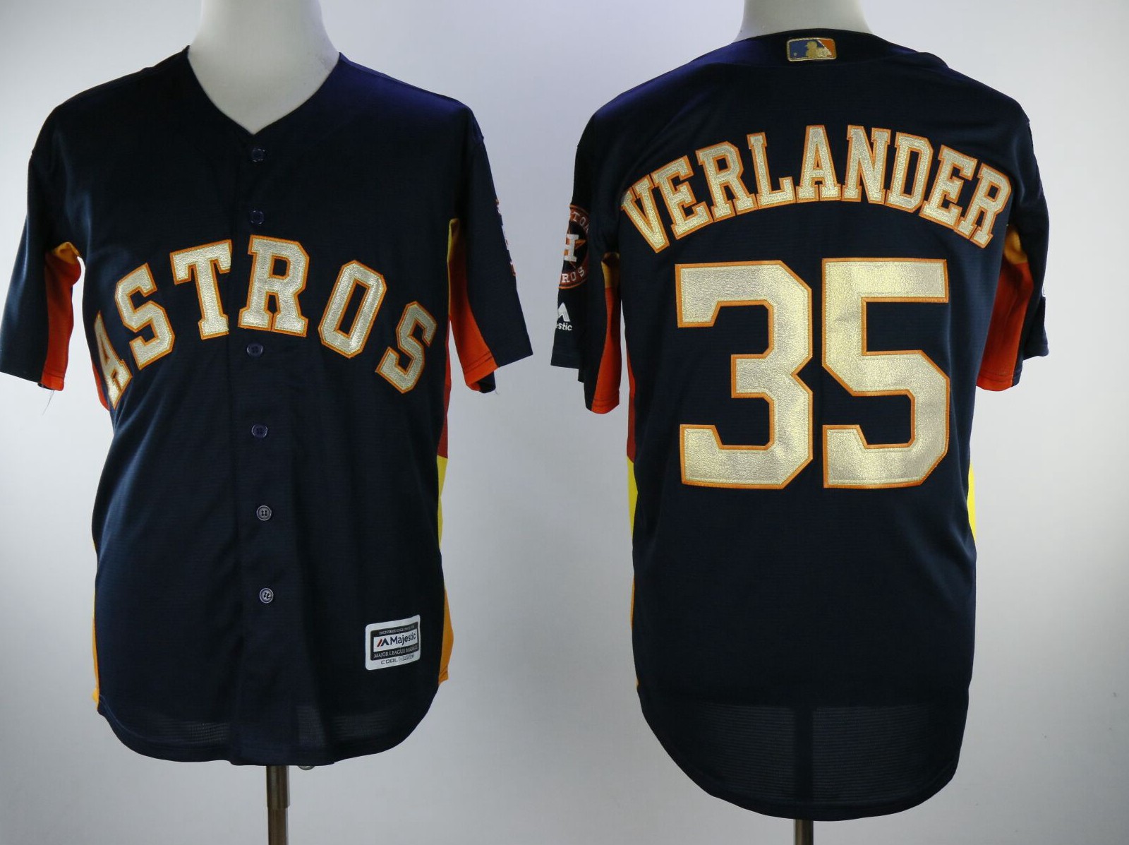 Houston Astros #35 Justin Verlander Cool Base Jersey Blue With Gold Number