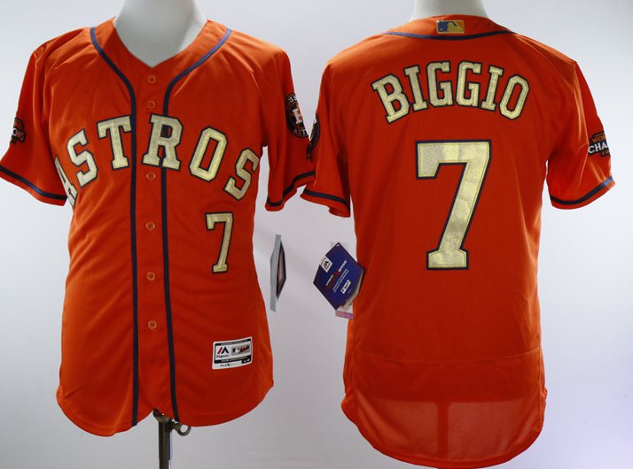 Houston Astros #7 Biggio With Gold Number Cool Base Jersey Orange