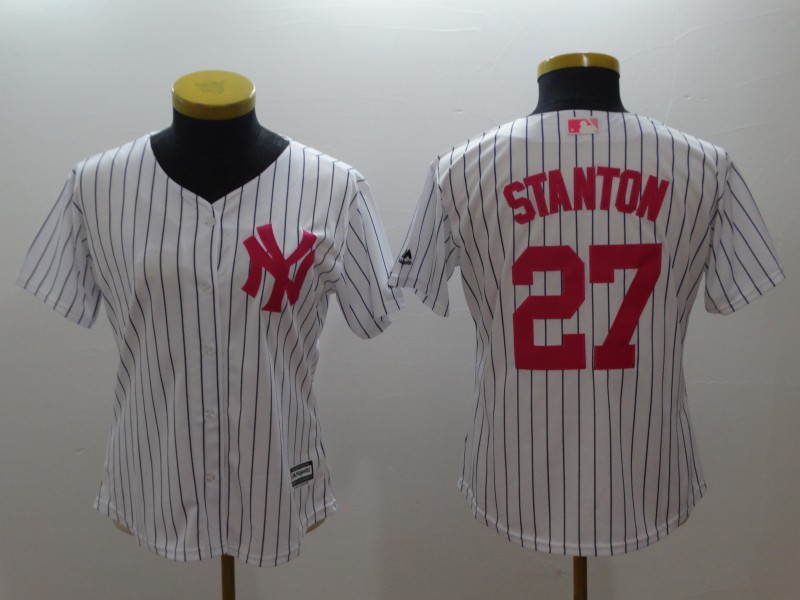 Women New York Yankees #27 Giancarlo Stanton Jersey White With Pink
