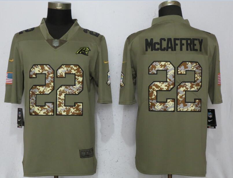 Carolina Panthers 22 Christian Mccaffrey Jersey Olive Camo Salute To Service Limited