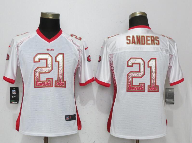 Womens San Francisco 49ers 21 Deion Sanders Football Jersey Drift Fashion White