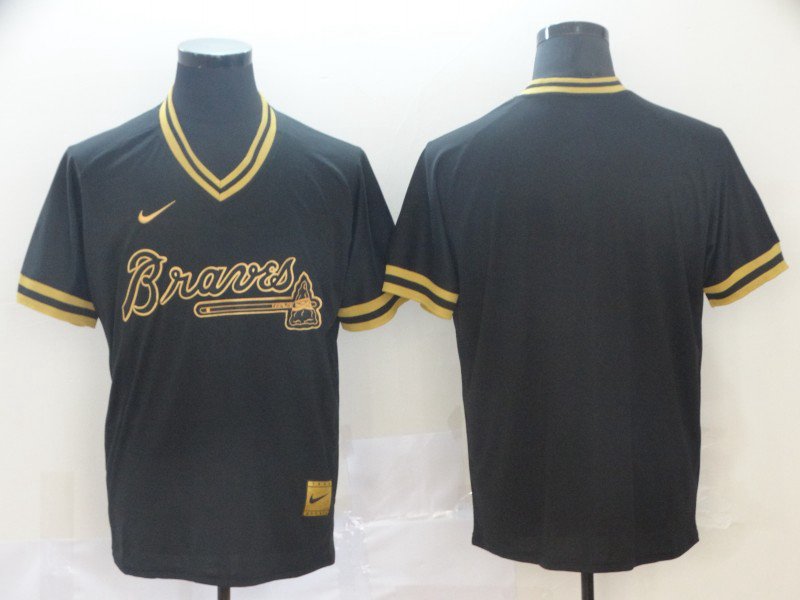 Nike Atlanta Braves Blank Fashion Jersey Black Gold