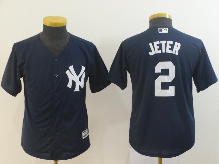 New York Yankees #2 Derek Jeter Youth Baseball Jerseys Blue