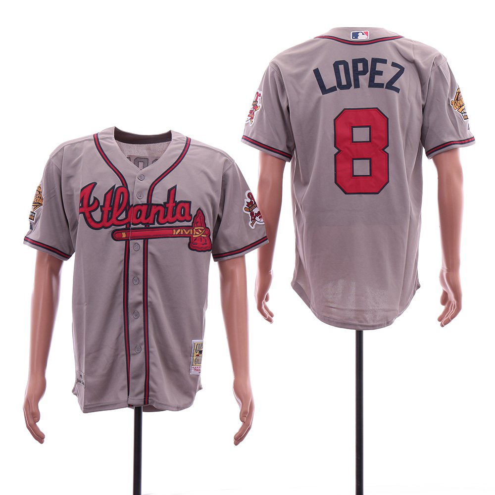Atlanta Braves 8 Javy Lopez 1995 Throwback Jersey Gray