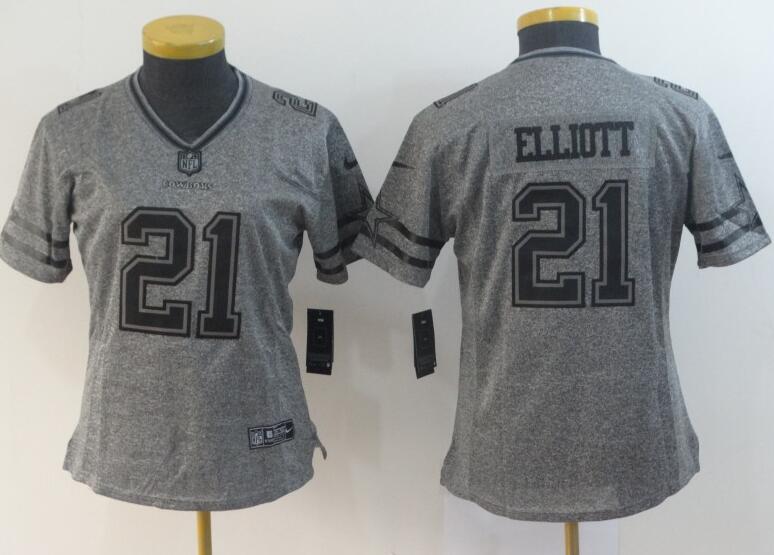 Women Dallas Cowboys # 21 Ezekiel Elliott Football Jersey Gridiron Gray