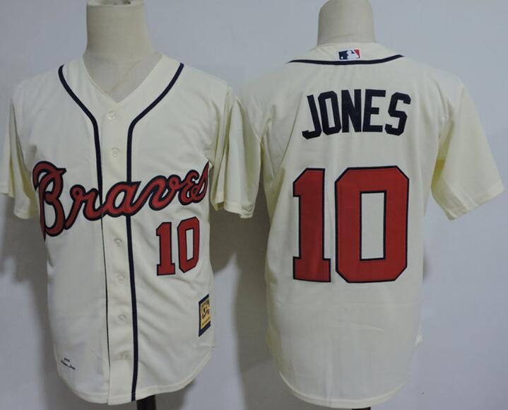 Atlanta Braves #10 Chipper Jones Throbwack Jersey Cream