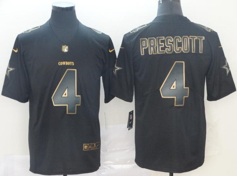 Dallas Cowboys #4 Dak Prescott Black Golden Vapor Untouchable Limited Jersey Black Golden