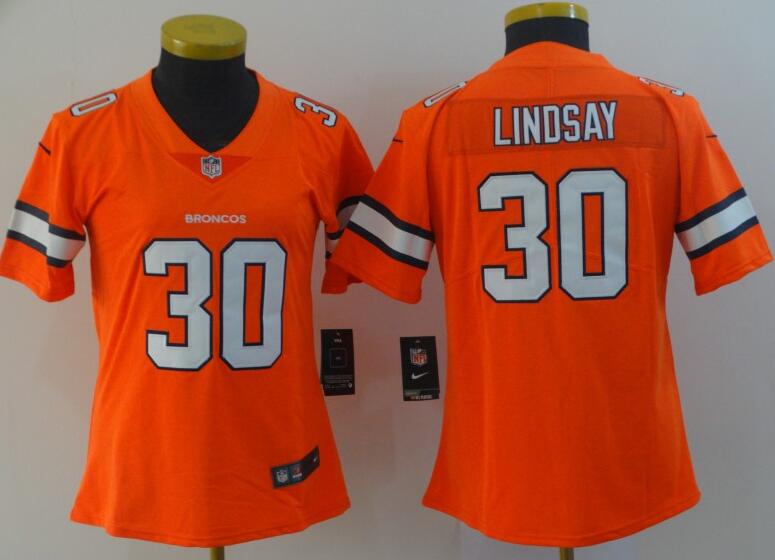Woman Denver Broncos #30 Phillip Lindsay Color Rush Limited Jersey Orange