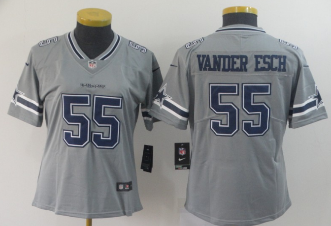 Woman Dallas Cowboys #55 Leighton Vander Esch Gray Inverted Legende Limited Jersey Gray
