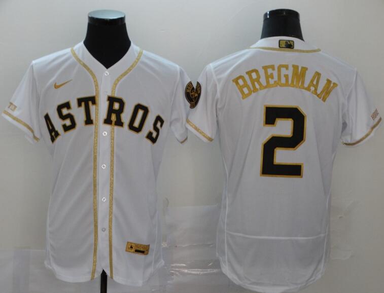 Nike Houston Astros #2 Alex Bregman Flexbase Jersey White With Gold Name