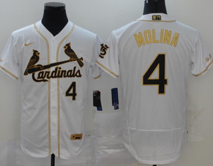Nike St. Louis Cardinals #4 Yadier Molina Flexbase Jersey White Gold