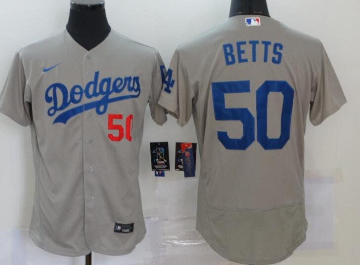 Nike Los Angeles Dodgers #50 Mookie Betts Flexbase Jersey Grey