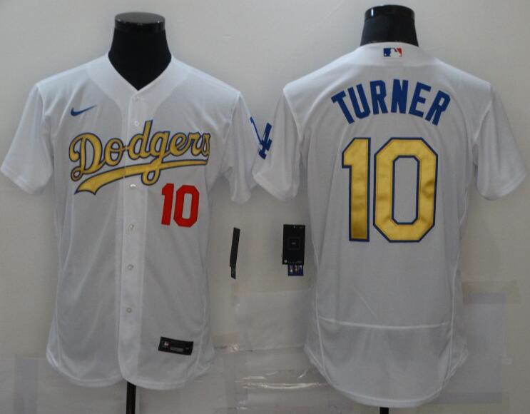 Nike Los Angeles Dodgers #10 Justin Turner With Golden Number Flexbase Jersey White