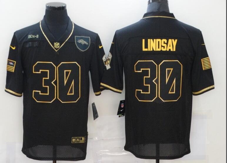Denver Broncos #30 Phillip Lindsay with Golden Number Salute to Service Limited Jersey Black