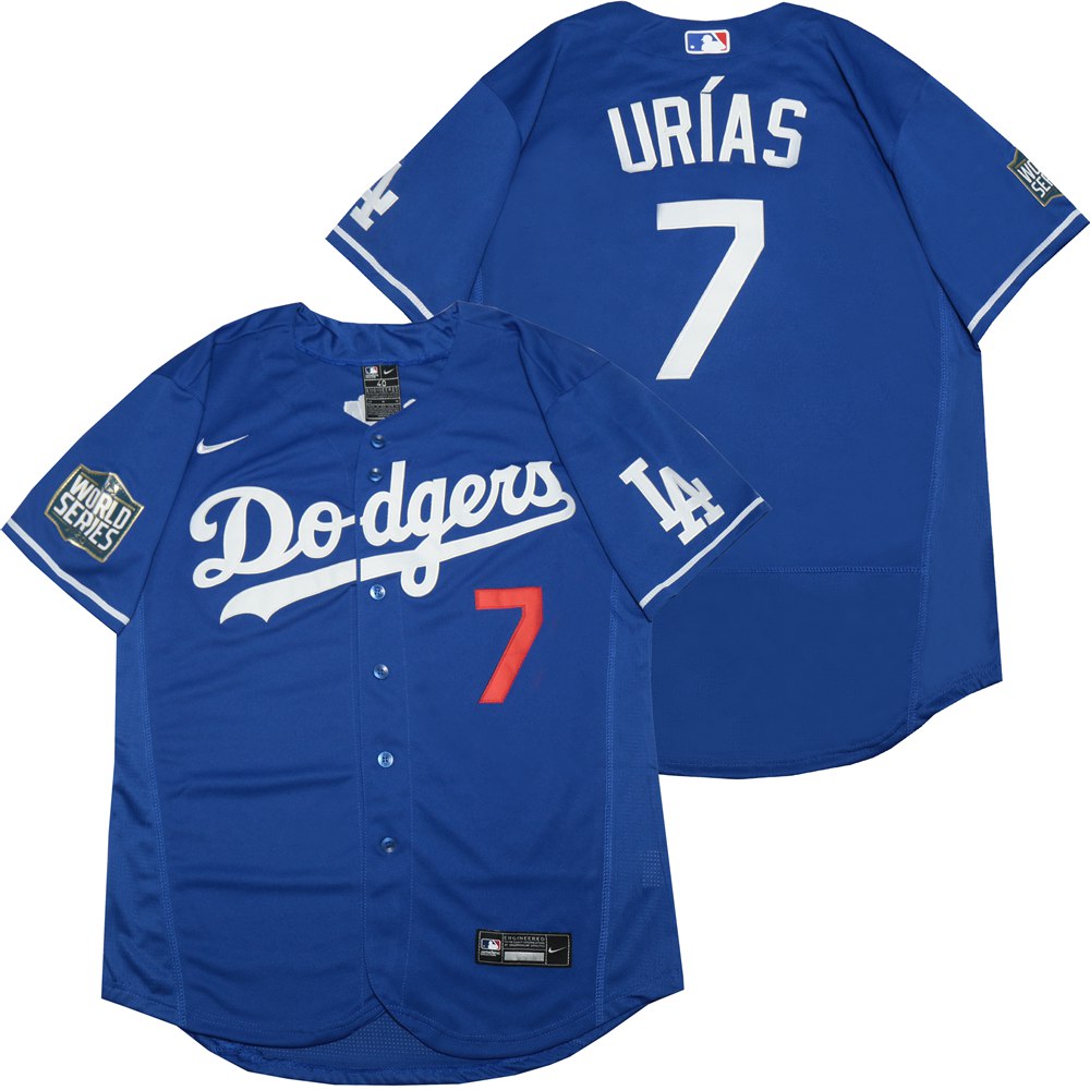 Nike Los Angeles Dodgers 7 Julio Urias Flexbase Jersey Blue w/ 2020 WS Patch