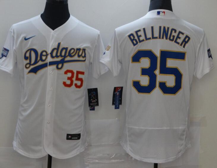 Nike Los Angeles Dodgers #35 Cody Bellinger 2021 Gold Program Flexbase Jersey White/Gold
