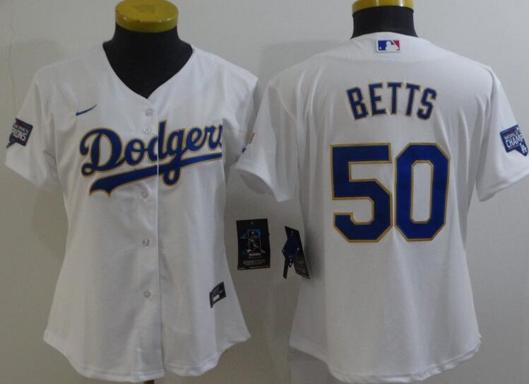 Woman Nike Nike Los Angeles Dodgers #50 Mookie Betts Gold Program Jersey White