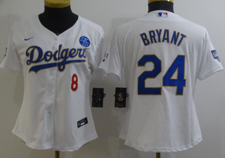 Woman Nike Los Angeles Dodgers #8/24 Kobe Bryant 2021 Gold Program Jersey White/Gold