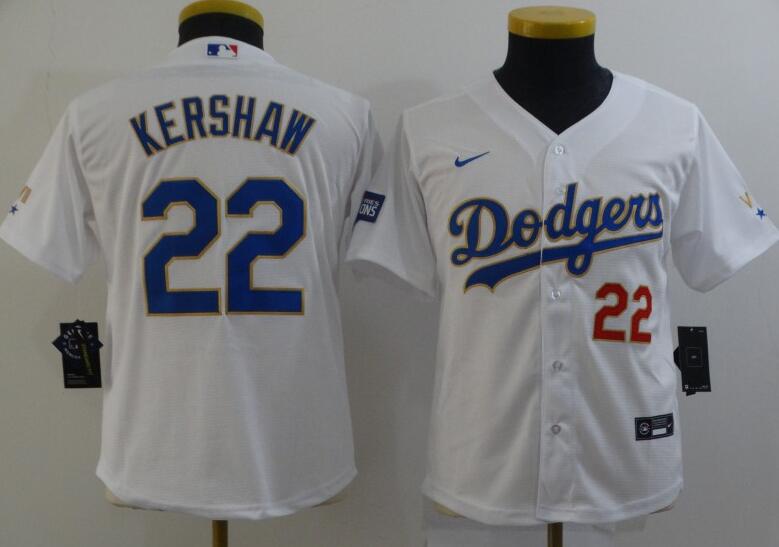 Youth Nike Los Angeles Dodgers #22 Clayton Kershaw With Red Number 2021 Gold Program Jersey White/Gold