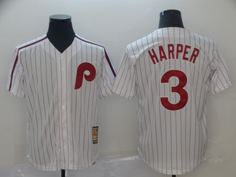 Philadelphia Phillies #3 Bryce Harper Throwback Jersey White Pinstripes