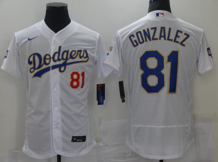 Nike Los Angeles Dodgers #81 Victor Gonzalez 2021 Gold Program Flexbase Jersey White/Gold