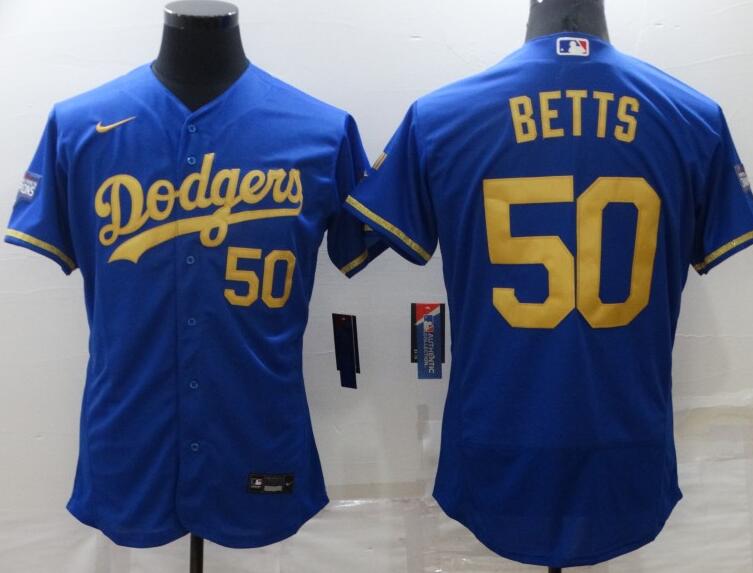 Nike Los Angeles Dodgers #50 Mookie Betts Flexbase Jersey Blue With Golden Number