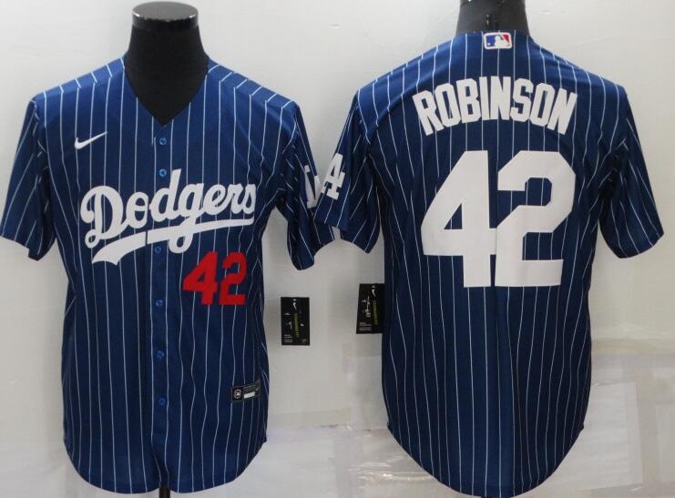 Los Angeles Dodgers #42 Jackie Robinson Pinstrip Cool Base Jersey Blue