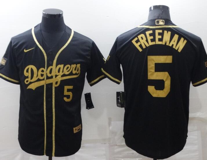Nike Los Angeles Dodgers #5 Freddie Freeman Cool Base Jersey Black Golden