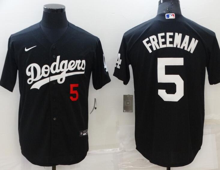 Nike Los Angeles Dodgers #5 Freddie Freeman With Red Number Cool Base Jersey Black