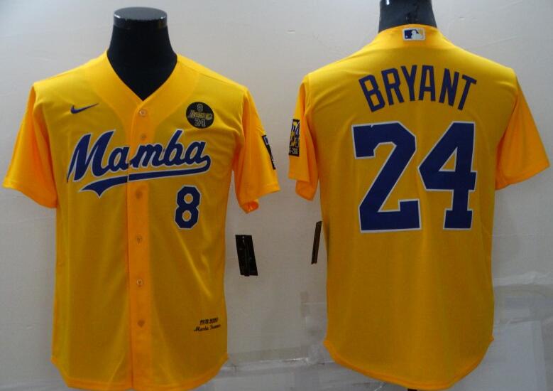 Los Angeles Dodgers #8/24 Kobe Bryant Mamba Cool Base Jersey Yellow