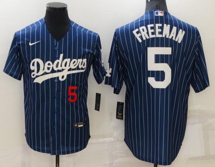 Nike Los Angeles Dodgers #5 Freddie Freeman Pinstrip Cool Base Jersey Blue