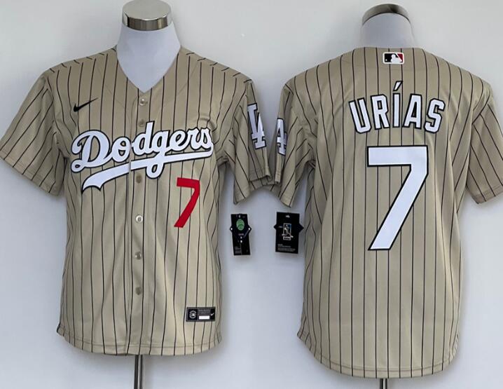 Nike Los Angeles Dodgers #7 Julio Urias Cool Base Jersey Tan Pinstripes