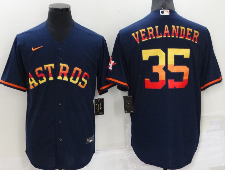 Nike Houston Astros #35 Justin Verlander Rainbow Cool Base Jersey Blue