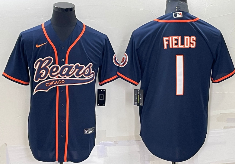 Chicago Bears #1 Justin Fields Baseball Jersey Blue