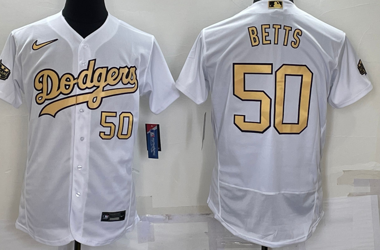 Nike Los Angeles Dodgers #50 Mookie Betts 2022 All Star Flexbase Jersey White
