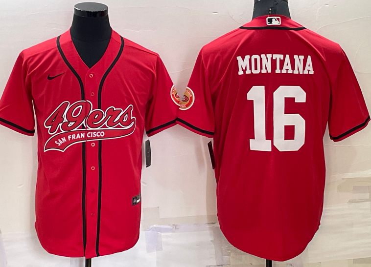 San Francisco 49ers #16 Joe Montana Baseball Jersey Red