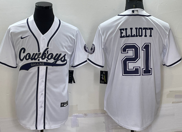 Dallas Cowboys #21 Ezekiel Elliott Baseball Jersey White
