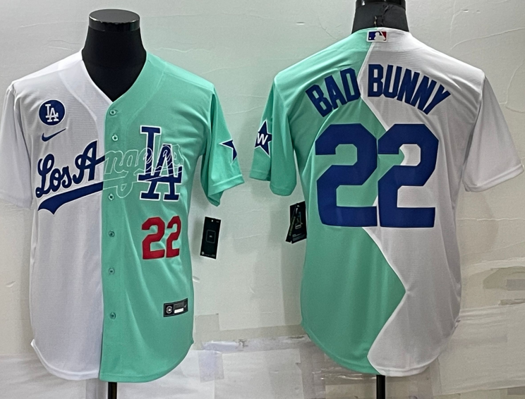 Los Angeles Dodgers #22 Bad Bunny On Front Cool Base Jersey White With Red Number
