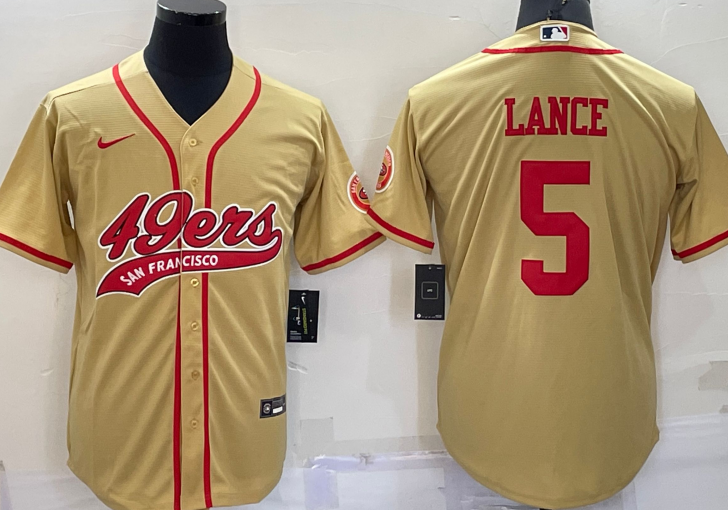 San Francisco 49ers #5 Trey Lance Baseball Jersey Gold