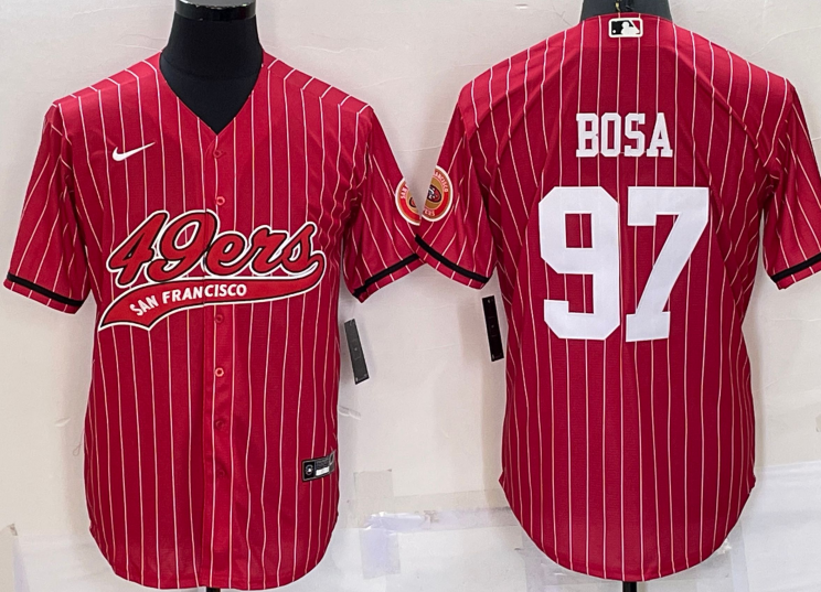 San Francisco 49ers #97 Nick Bosa Pinstrip Baseball Jersey Red