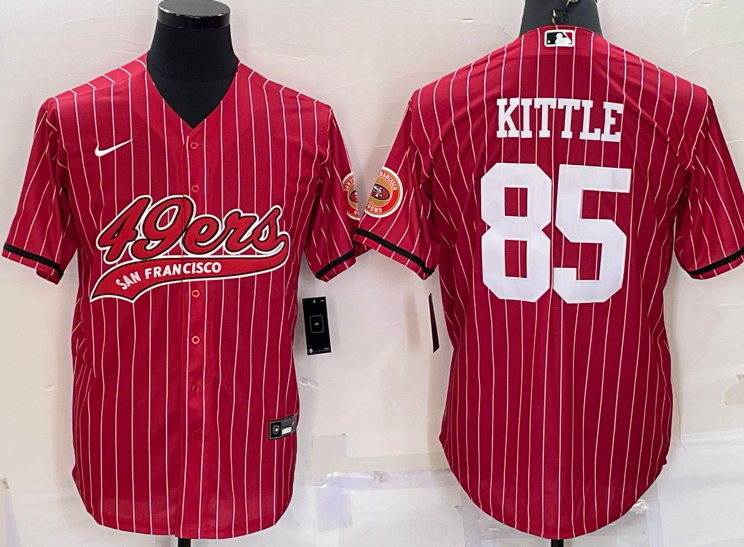 San Francisco 49ers #85 George KittlePinstrip Baseball Jersey Red