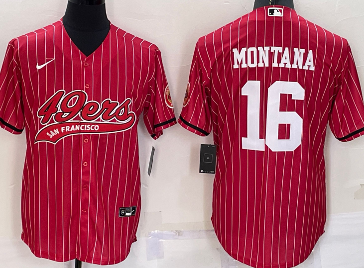 San Francisco 49ers #16 Joe Montana Pinstrip Baseball Jersey Red