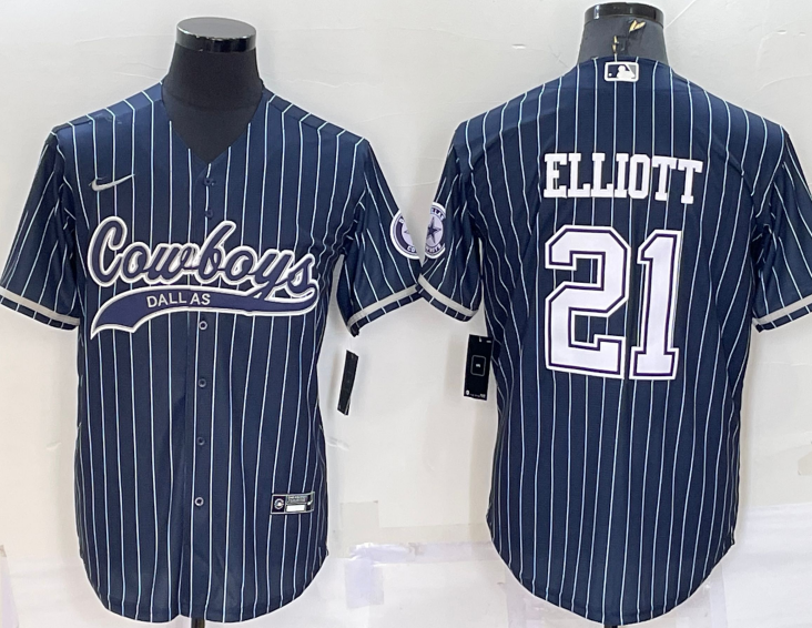 Dallas Cowboys #21 Ezekiel Elliott Pinstrip Baseball Jersey Blue