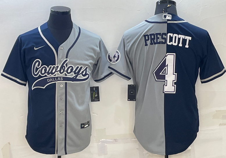 Dallas Cowboys #4 Dak Prescott Baseball Jersey Blue Grey