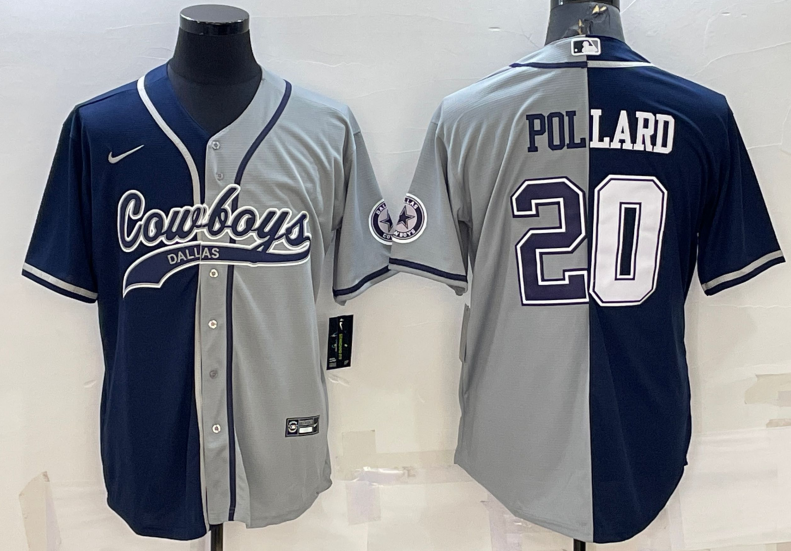 Dallas Cowboys #20 Tony Pollard Baseball Jersey Blue Grey