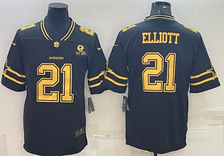 Dallas Cowboys #21 Ezekiel Elliott 3rd Limited Jersey Black Golden